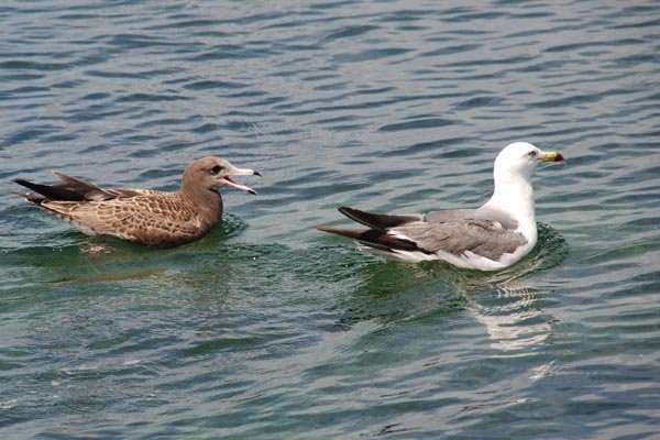 Справа взрослая птица, слева птенец первогодок. Уже чем-то недоволен.