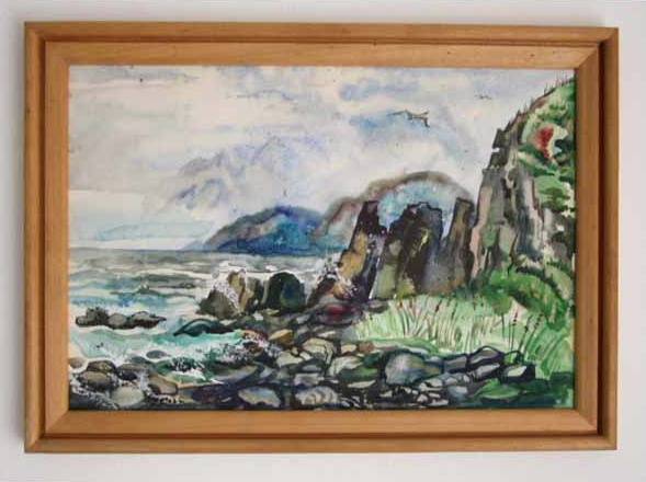 Акварель: Бухта Восточная острова Рикорда, Черные скалы.